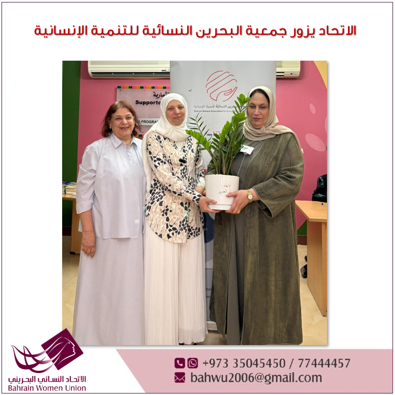 زار وفد من الاتحاد النسائي البحريني والجمعيات النسائية مركز كن حرا التابع لجمعية البحرين النسائية للتنمية الإنسانية في منطقة الزنج، وذلك مساء يوم الثلاثاء الموافق 27 مايو 2025. وقد تضمن برنامج الزيارة عرضًا مصورًا وشفهيًا لأهم البرامج والأهداف التي تعمل عليها الجمعية ،كما تم التحاور بشأن بعض البرامج المستقبلية المزمع عقدها بالتعاون مع جمعية البحرين النسائية للتنمية الإنسانية والجمعيات النسائية المنضوية للاتحاد النسائي البحريني، وشهد برنامج الزيارة تفاعلا من الحضور ،كما تضمن حوارات ثرية تتعلق بسير عمل الجمعية المشار إليها والجمعيات النسائية .